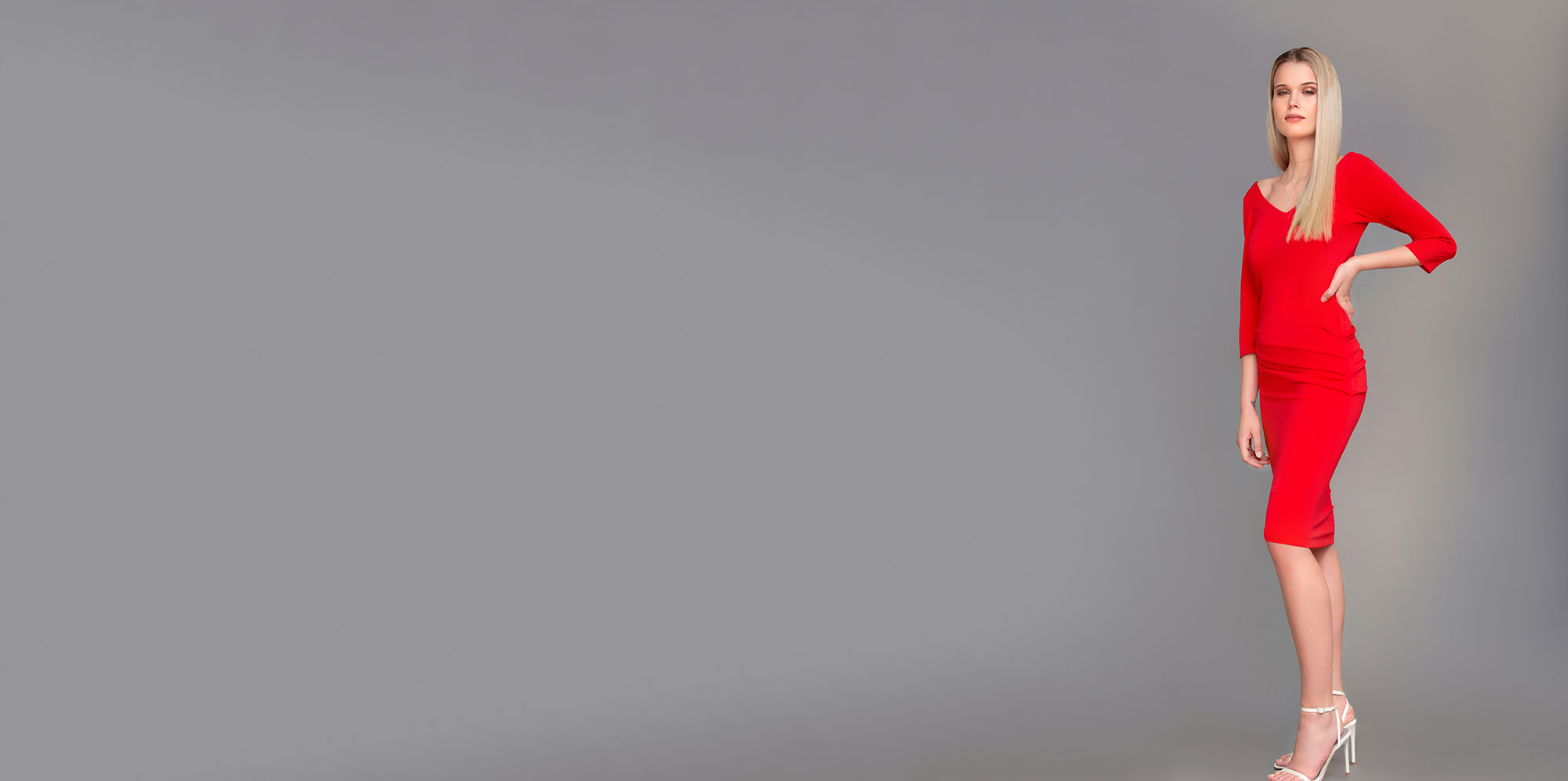 Das zweite Kleid des Labels ist die Weiterentwicklung in Form eines echten Etuikleides mit 26 Schnittteilen und hochwertigen Texturen. Inzwischen gibt es in der Kollektion DAS KLEINE ROTE auch eine Version mit V-Ausschnitt und Raffungen um die Hüfte...